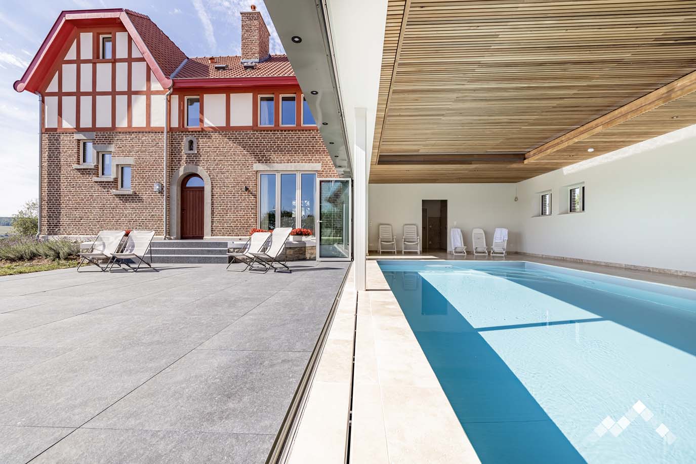 Luxueuse demeure familiale située dans un environnement paisible et ressourçant. Avec piscine intérieure, sauna et accès PMR.